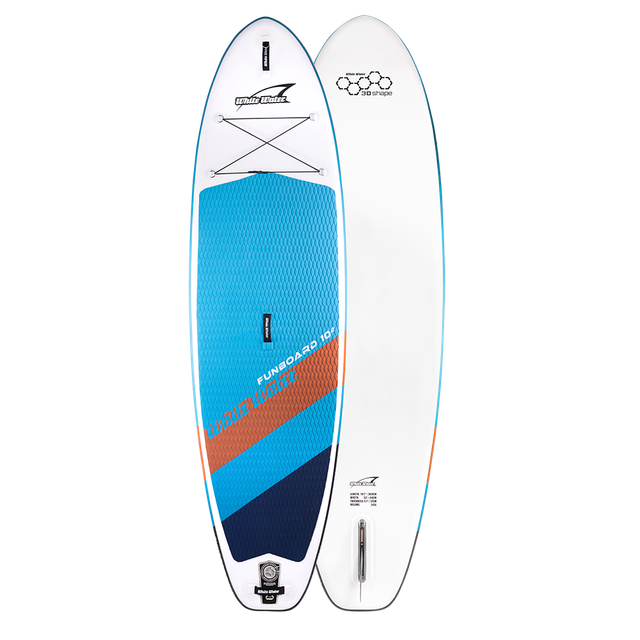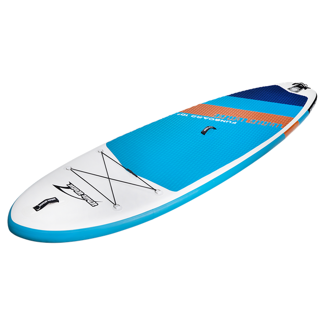 Das Funboard 10‘2‘’ ist ein Brett für Einsteiger, Familien und leichtere Personen. Durch das runde Heck und die universelle Outline, ist es sehr einfach auf dem Wasser zu bewegen.