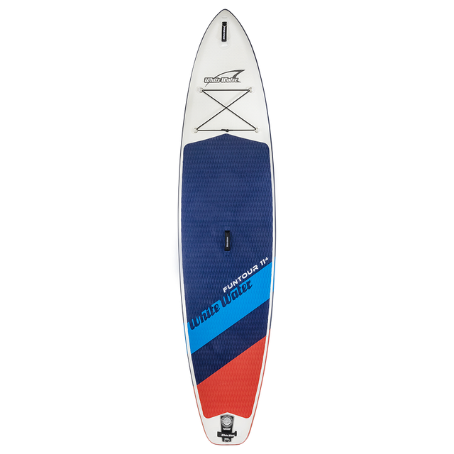 Das Funtour 11‘4‘’ ist das Allroud-Touring Brett von White Water. Es ist geeignet für sportliche Seeüberquerungen oder ausgedehnte Erkundungen. Das gerade Heck und die schmale Outline unterstreichen diese Eigenschaften. Geradeauslauf und Geschwindigkeit gehören zu seinen Stärken. Die 150 mm Dicke bietet dem Paddler extra Volumen und Steifigkeit, um Gepäck, Kinder oder den Hund mitzunehmen. Mit der umlaufend doppellagigen Verstärkung an den Seiten, ist die White Water Konstruktion dennoch robust genug.
